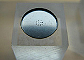 噴射ノズルの部品は、厚さ0.08mmから0.3mmのステンレス板に開ける孔径0.12mmから0.3mmの微細な孔。人間の髪の毛の平均が0.08mmだから、その微細さは分かるだろう。