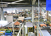 マンションやアパートをはじめ、今や戸建て住宅でも一般化しているユニットバス。年々多様化するサイズや素材に応じて、壁と天井のパネルを1枚1枚オーダーで生産しているのがコトヒラ工業。ここで製造しているのは松下電工をメインに全国シェア20%を誇るユニットバスパネルだ。
