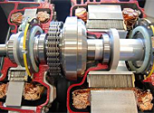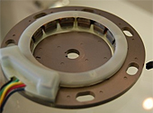 回転子に楕円系の鉄板を取り付けることで、周辺部のコイルが出力電圧の変化を測定、回転角度を検出するのだ。