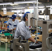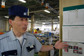 約1000種類にも上る同社のオフィス用いすは、機械でなく、人の手で最終的なチェックを受け、完成する。できあがったいすは、この工場からトラックで全国に出荷されている。