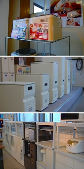 上から、パン焼き機、こめびつ、レンジ台。家庭用品も数多く手掛ける。