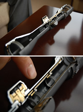 ライフルスコープの心臓部は、筒のほぼ中央に納められた「正立筒(せいりつとう)」と呼ばれる部分だ。対物レンズで反転した像を、もう一度反転させるためのレンズで、この中に十字マークなども収められる。スムーズに回転することはもちろん、高い耐久性を確保するためには、ひとつひとつの部品の組み込み方が非常に重要なのだ。同じように見える部品でもコンマ数ミリ以下の極小な差があり、それを組み合わせる技術はライト光機の熟練者ならではのものだ。