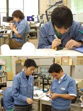 設計部隊は若いメンバーが多い。新しい双眼鏡もここから生まれた。