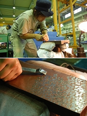 「きさげ」は現場でベテランから若手に受け継がれてゆく。「最近は、きさげをやらせてください、なんて言ってくる者もいるんです」江黒社長は嬉しそうだ。