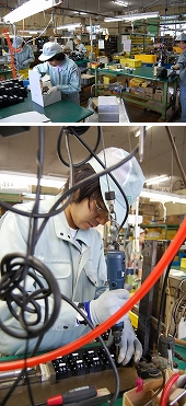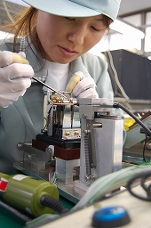 接点の圧力など、ひとつひとつ検査され出荷される。