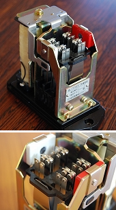 列車のドア開閉用のリレー。赤と白の磁石が火花解消のカギとなった。