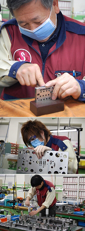 鈴木の中核となる「精密金型」加工技術は、多くの匠たちによって支えられている。金型設計に約30人、新規開発に約20人と多くの優秀な人材をあてている。
