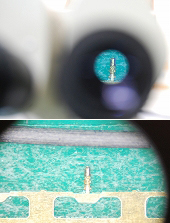 「限りなき超精密」への挑戦。拡大鏡を覗くと、髪の毛よりさらに小さな部品が…。