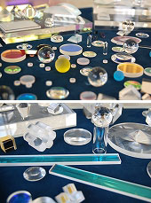 カタチだけではない。赤、青、黄色、ピンク・虹色と色鮮やかで、まるでショーケースの中。宝飾の輝きを放つ製品群、これこそ夏目光学が誇る特殊レンズだ。