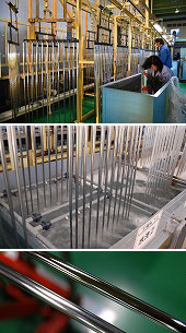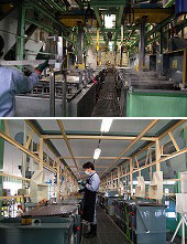 化学薬品独特の酸のかすかな匂いがするサン工業の工場内では、溶液の入ったいくつもの水槽の中を自動ラインに乗せられた部品が運ばれていた。
