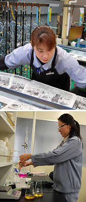 顧客の欲求に応えるべく、表面処理技術の開発を行う若手研究者たち。