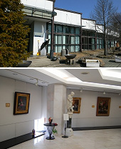 長野県・上高井郡高山村にあるアスザック本社。外観も中も、まるで近代美術館