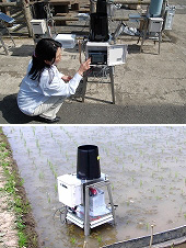 なかでも注目は、水稲の「いもち病」を予測する観測装置だ。気温・湿度、さらにセンサー部門が開発した「葉濡れセンサー」を統合させたシステムで、「低コストで低農薬な稲作が可能になる」と期待を寄せる。