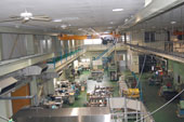 「VT」はValue Technologyの略。工場とは一つ屋根の下、現場の声が届くところにある。研究所といっても図書館、大学の研究室のような雰囲気である。少し照明を落とした室内、仕切られたコーナーごとに、パソコンが並ぶ。社員の2割がこのVT研究所に在籍しているという。