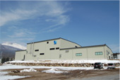 青い空に白煙をたなびかせる浅間山。御代田町にある日穀製粉軽井沢工場は、2年前に新設された「そば茶」専用の工場だ。