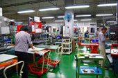 平出精密の本社工場。現場フロアでは、約80人のスタッフたちが専用マシンに向かって黙々と板金の加工作業をしていた。