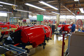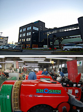 長野電鉄の北須坂駅にほど近い工業団地内にあるショーシンの本社工場では、年間およそ800台のスピードスプレヤー(SS)がつくられ、全国の果樹園で活躍している。
