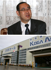 「今話題の東京スカイツリーに設置されるエレベーターや階段等はウチが納めさせていただいた鋼板(こうはん)(=鉄の板)で造られた製品も使用されています。自動車、エアコン等の家電、住宅等いろいろの業界に弊社の鋼板が使用され、我社は鋼板のデパートみたいなものです。」重厚な鉄のイメージを、明るく語る古畑勝茂氏58才。全国に5つの拠点を持つ鋼板専門商社で加工メーカーでもある古賀オール株式会社の2代目社長である。社長の出身地の長野県にある甲信越支店・工場・流通センターを取材した。