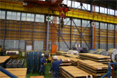 「鉄は市況品でね、リーマンショックからすでに8割は回復してきましたよ。」クレーンの移動を知らせるサイレンの音は休むことなく響く。レベラーと鉄のかたまりの間に見え隠れする白いヘルメット、工場内には緊張感がひろがっている。