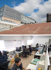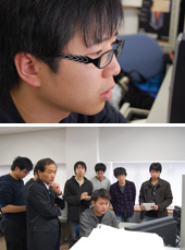 研究室では、熱心にパソコンに向かう10人ほどの学生たち。画面には、CG(コンピューターグラフィックス)で合成された歯車の画像が映し出されています。「コンピューターで、力のかかり方などをシミュレーションしています。」