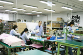 工場内では、周囲に蛍光管がついた直径15センチほどの拡大器を使って検査作業が行われていた。電子回路のはんだ付けのチェックでは3センチ程度の基板に縦横斜めと光を当てる。「ここにはんだがはみ出している箇所があります。」慣れた手つきで赤い付箋をはる女性。目は次の基板を捉えている。