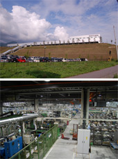 とにかくケタ違いに大きい。約6.7ヘクタールの広大な敷地に、延床面積48000平方mの工場棟。屋上には、150kWの太陽光発電パネルが並ぶ。