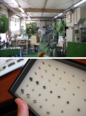 「くれぐれも『こびとづかん消しゴム』だけって誤解されないよう、ちゃんと取材してくださいよ」と、伊藤社長が持ってきたのは、1㎜程度の極小部品だ。「私たちが作っているのはおもに、マイクロモーターの部品。ケータイの振動モーターの精密な部品です。」