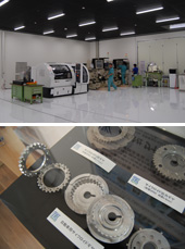 「プレスや金型工場は、どうしても油で汚れる。白い床はNGなんですが、ここにもこだわりたかった。」あえて汚れが目立つ白い床は、きれいに使おうという意識が高まると、平林社長。働くスタッフだけでなく、「ここで作られた部品なら安心」とエンジンメーカーなどの顧客にも喜ばれる工場にしたい、そんなこだわりが随所にみられる。