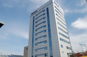 長野駅から南下することクルマで15分。郊外型ショッピングセンターや飲食店が並ぶ長野市篠ノ井の旧国道18号線沿いに、ひときわ目立つ11階建てのビルが前田製作所の本社工場だ。