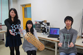 「企業さんから依頼を受けて解析のお手伝いをしています。自分が作ったプログラムによって、いい結果が出たよという報告を聞けることが、自分にとって一番うれしいです」と電子情報工学科5年の小林大介さんが言うように、企業との共同研究も多く進めています。民間企業からの高い評価であると同時に、学生たちにとってもスキルアップのチャンスとなっているようです。