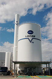エア・ウォーターは、全国で約1万2千人が働く企業グループ。製造現場で幅広く活用されている、酸素ガスや窒素ガスなどの産業ガスや医療用ガスを製造している。長野県内にも14の事業があるが、その中心となっているのが平成6年に松本市梓川に設立した「しなのエア・ウォーター」。この地を信州の拠点に選んだのは、エア・ウォーターグループの現会長である青木弘氏の出身地であったことと、自然豊かな環境が決め手だったという。