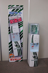 一般向けの商品として現在力を入れているのが、このウォーターサーバー。大町市にあるAW・ウォーター事業部が中心となって開発したもので、使用している水は北アルプスの伏流水。天然水を非加熱で使用しているため、ミネラル成分を豊富に含んでいる。地元のサッカーチームのサポーターになることで、より知名度を上げようという取り組みも同時に行っている。