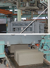 「会社が生き残るためには、他が作らないものを作るか、他より生産効率を上げることが大切。」と語るのは、社長の大池悦二さん。創業当時は土木工事を主にしていたが、バブル崩壊後の公共工事の受注減を境にコンクリート二次製品の開発と製造に主軸を移していった。独自の型枠にコンクリートを流し込む生コン成型と、硬質のコンクリートを圧縮して固めるプレス成型で、サイズや個数を問わず様々なコンクリート製品を生産している。