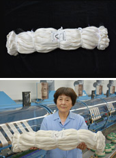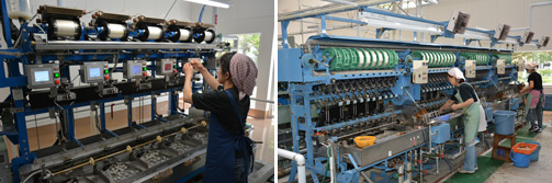 中国やブラジルなどとの価格競争で厳しい環境にある製糸業だが、同社は付加価値が高く高級な着物や帯など和装製品の材料となる極細生糸を中心に多品種少量の生産を展開している。