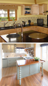 デラ工房の特徴は、キッチンや家具の製造だけではなく住まいの空間全体をコーディネイトすること。キッチンや家具に合わせて、それに合うカーテンや壁紙に付け替えるなど、部屋全体の一体感を出すことにこだわりを見せる。施主さんと何回も相談して作り上げていくため、長いものでは1ヶ月近く要することもあるという。家具単体はインターネットで県外からの発注も多いが、キッチンを含めた住空間づくりは地元を中心に行っている。