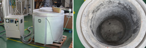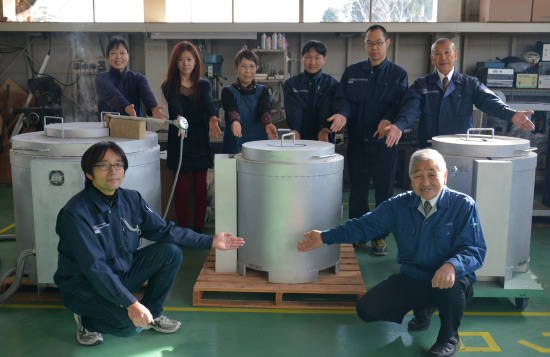 現在は大手メーカーのOEM生産が製品の多数を占めているが、近年は長年蓄積した技術を活かして自社ブランド製品も生み出している。その代表作がこのアルミニウムを溶かす高効率電気溶解炉。通常はガスを使用するものが多いが、電気を使うことで環境性能を向上させるとともに細かい温度調節も可能となった。当初は電力の消費量に課題があったが、改善を重ねることで省エネ化も実現した。