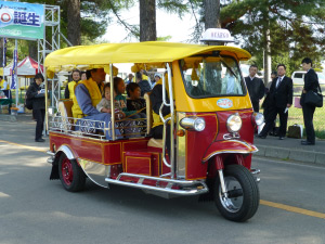 研究開発が生命線となるナビオにとって、地元の産学官との連携は欠かせない要素だ。その代表例が、この「オカーゴ」。タイの三輪自動車を、佐久商工会議所の支援によって地元企業と共同で電気自動車に改造したものだ。宿場町を走る観光用自動車としても活用されているほか、この自動車用に開発したリチウムイオン電池の充放電技術の他分野への活用も模索している。