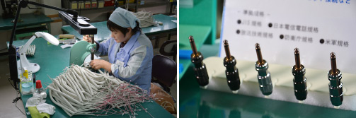 もう一つの柱が、通信用のプラグ・ジャック製造。火災などの緊急時や、高速道路の退避箇所に設置されている電話等に使われている。普段はめったに使われないが、いざという時に使用できる耐久性と信頼性が求められる。短頭・双頭プラグやL型・T型ジャックと呼ばれるこれらの製品を国内で製造しているメーカーはほとんどなく、量産しているのは相崎電機製作所だけだと言われている特殊な部品だ。