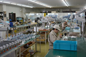 主力製品の一つが、「スリットランプマイクロスコープ」と呼ばれる目を診察する顕微鏡。昨年新たに市場に送り出したのが、「700GL」と名付けられた製品だ。照明にLEDを採用したほか、ケーブルをなくしてすっきりとしたデザインとなっている。このほか手術用顕微鏡や視力検査装置などを、周辺機器に至るまで全て自社で組み立てている。