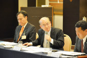 今回で13回目となるものづくりNAGANO応援懇話会。 座長である長野県経営者協会の山浦愛幸会長や阿部守一長野県知事のほか、 今回から加わった新メンバーも出席して会はスタート。 これに先立ち、ゲストスピーカーとして招かれた日精エー・エス・ビー機械の青木高太社長による講演が行われた。