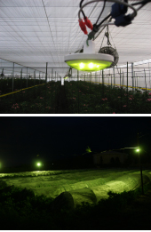 害虫防除専用のLEDランプは消費電力も少なくコストも抑えられ環境に優しいこと、農薬などの使用が減り他の作物の生育への影響もないのが特徴。 またLEDランプは小さく軽量で設置しやすく太陽光発電パネルなどを利用すればどこにでも設置できるのが強みになっている。