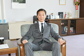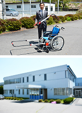 箕輪町に本社を構えるJINRIKの中村社長。平成24年8月に会社を設立し世界で初めて押すだけの車いすから補助装置を付けて引くこともできる車いすを開発した。「押す」から「引く」への発想の転換により、いままで困難を極めていた車いすの砂利道や段差、坂道などでの移動を楽にできるようにした。
