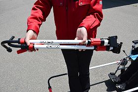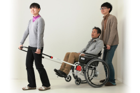 ポイントは「押す」ではなく前輪を浮かせて「引く」にあった。引くことで前輪を浮かせることが可能になり介助する側の負担が減ってスムーズ移動がよりできるようになった。