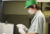 何処から見ても陶器にしか見えないこの器が、メラミン食器「匠」。陶芸家が作った実際の作品を三次元測定機で測定し、そのデータを三次元加工データに変更し、このデータを基に製作された金型を用いて成形加工するというものだ。見た目は素朴な風合いそのものだが、コンピューター処理や金型技術など最先端の処理技術が凝縮されている。