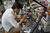 アンプに使用されている半導体部品などは仕入れているが、それ以外の基板や機械の設計、木工や組立など自分一人で製造をしている。
