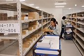 「少量であっても短納期でお届け出来るのが、我が社の強み。その部分をもっと進化させていきたい。」と話す、社長の佐谷紳一郎さん。このため製造拠点である安曇野工場に隣接するスペースに、「物流ハブ」と呼ばれる流通拠点を新設した。デジタルカメラやプロジェクターなどのコネクタ部品製造で国内トップを走る本多通信工業の、より多品種少量生産を目指すための新たな取り組みだ。