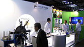 精密に切削加工された金属ガラスの製品を展示した牛越製作所の牛越社長によれば「この工業メッセがきっかけとなって商談が成功したり 会場のブースで図面を持って相談に来られることもある」と言います。