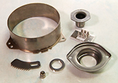 自社の強みについて、オオタの太田修吾社長は、「プレス工程の回数を減らす技術を持っていることです」と話します。写真は自動車向けの精密プレス部品。精密金型の設計・製作段階で独自のノウハウを生かし、プレス工程を減らす工夫で生産性のアップやコストの削減を提案しています。