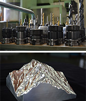 精密部品加工の佐藤製作所が山岳模型に乗り出したのは2012年。立体地図が好きという佐藤有司社長が地図データをもとに、3次元加工で製作を始めました。特徴はアルミ板から削り出すことで、アルミ独特の光や陰などが生かせること。「個人向けの金属加工の山岳模型は全国的にも珍しい」と話す佐藤社長。「山モデル」の商品名でファンを広げています。