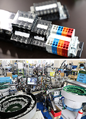 使われる場所によって、配線の数もサイズも違います。東洋技研のカタログに掲載される商品の数は、およそ45,000種類。特に端子台は年間6千万台を生産し、国内でトップシェアです。
